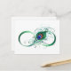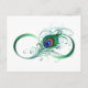 El símbolo del infinito con una pluma de pavo real brillante, verde y artística sobre un fondo blanco. Estilo tatuaje.