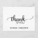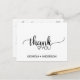 Esta simple caligrafía negra gracias postal es perfecta para un boda rústico. El diseño minimalista incluye un elegante guión de broche y un bonito corazón femenino. Personalice la parte delantera de la tarjeta con un mensaje corto. Personalice la parte posterior con un mensaje de agradecimiento más largo. Como alternativa, deje en blanco la sección plantilla de mensajes de agradecimiento para escribir a mano una nota personalizada en cada postal después de su llegada. Estas postales se pueden usar para la ducha de novia, el boda o cualquier evento especial.
