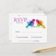 Presentamos la tarjeta postal RSVP de la boda "Amantes del Arcoiris". Esta postal de RSVP está elegantemente diseñada con una fascinante obra de arte de la colección "Amantes del arco iris", que incluye dos intrincadamente representadas aves enfrentadas entre sí en medio de los vivos colores de la bandera del orgullo LGBTQ+. Los pájaros amorosos simbolizan unidad, inclusión y amor, creando un impresionante efecto visual contra el crujiente fondo blanco. La parte delantera de la postal permite a los clientes escribir sus nombres, lo que permite a la pareja seguir fácilmente la respuesta. Debajo, hay opciones para que los invitados acepten o rechacen la invitación, indicando si asistirán al boda. Más abajo, hay una sección en la que los clientes pueden especificar cualquier tipo de alergia alimentaria que puedan tener, para que la pareja pueda satisfacer sus necesidades y preferencias. La parte trasera de la postal mantiene el diseño cohesivo y visualmente atractivo con el mismo arte cautivador de los Aves Arojos del Arcoiris. En el lado derecho, hay espacio para la dirección del destinatario, asegurándose de que la postal RSVP pueda ser enviada fácilmente a la pareja. El lado izquierdo de la parte posterior puede incluir un breve mensaje o instrucciones, agradeciendo a los invitados su respuesta y reforzando cualquier detalle importante. En general, la tarjeta postal RSVP de la boda de los "Aves Amantes del Arcoiris" es una forma bonita y conveniente para que las parejas recojan las respuestas de sus invitados. Con su cautivadora obra de arte, espacio de personalizable para nombres y opciones de RSVP, y detalles cuidadosos como alergias a alimentos, esta postal garantiza que la pareja pueda planear y prepararse para una celebración boda verdaderamente memorable.