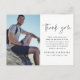 Una tarjeta de agradecimiento de la memoria funeral Minimal que incluye escritura a mano gracias y tipografía simple. Haga clic en el botón de edición para personalizar fácilmente esta plantilla de agradecimiento con sus propios detalles y la fotografía de su ser querido.