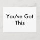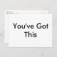 Mensaje sencillo y sencillo: "Tienes esto". El mensaje se puede cambiar a lo que quieras. Con un tipo de letra sin pretensiones, sans-serif en blanco y negro, también puede cambiar fuentes y colores. Haz que esta postal sea tuya. O enviarlo como está, para un efecto subestimado.