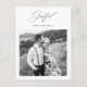 Moderno boda minimalista en blanco y negro una foto gracias postal presenta un elegante guión de caligrafía agradecida y una foto con un mensaje de agradecimiento personalizado personalizado y dirección de retorno en la parte posterior de la tarjeta de agradecimiento recién casada.
