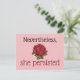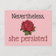 Este elegante diseño vintage presenta las palabras "Sin embargo ella persistió" en negro y rojo en la tipografía popular contra un fondo rosa pálido. En el centro del diseño hay un rosa rojo de época. Este diseño hace un gran regalo de aliento e inspiración para usted o una mujer o chica importante en su vida.
