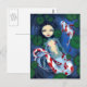 Sirena de estanques Koi - una hermosa sirena con una cola muy parecida a un pez koi, que emerge ligeramente del estanque con varios amigos de peces koi nadando a su alrededor. Me encanta esta pintura. Mi propia pintura acrílica original.