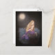 Una sirena solitaria se sienta en una roca en una noche a la luz de la luna.