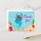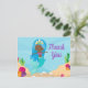 Tarjetas postales personalizadas de sirena negra adorable con una niña afroamericana de pelo azul con una cola de color verde turquesa genial nadando junto a un hermoso coral brillante en el océano. Tarjetas de agradecimiento de cumpleaños de verano geniales para niños.