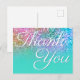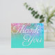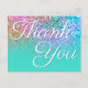 Una imagen con gradiente turquesa y foto de bokeh multicolor arcoíris de sirena falsa con brillo para usar en sus tarjetas de agradecimiento.