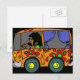 Regresa a los años 60 con este diseño que incluye una camioneta naranja con típicos logos de los años 60 y manejada por un hombre con el pelo largo. Colorido y divertido.