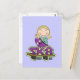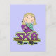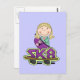 Diseño de skateboarding con un chica de pelo rubio con patineta y texto fresco que dice "SK8" en postales para chicas de patinaje.