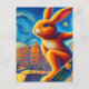 Postal Skateboarding Bunny Surreal Colorful y Diversión