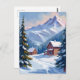 Ski Cabin Mountain Landscape Watercolor Winter Postcard