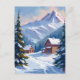 Postal Ski Cabin Mountain Landscape Watercolor Winter