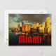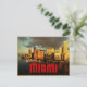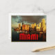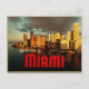 Esta escena dramática ofrece el horizonte de Miami, Florida por la noche con un aspecto de postal vintage.