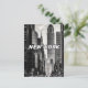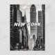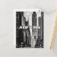Una espectacular vista aérea en blanco y negro de la ciudad de Nueva York por la noche. El icónico Empire State Building se eleva en lo alto del centro, iluminado contra el cielo oscuro. Los impresionantes rascacielos de la ciudad se extienden en todas direcciones, creando una escena impresionante e inspiradora. El río Hudson y los barrios circundantes se pueden ver a lo lejos.