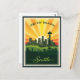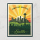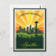 Postal Skyline Retro Seattle con aguja espacial al atarde