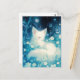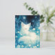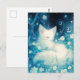 This ethereal postcard captures a moment of pure tranquility as a fluffy white fox rests peacefully in a magical midnight garden. The artwork features a dreamlike palette of deep indigo, teal, and soft cream, with the fox nestled among delicate white blossoms and swirling botanical vines. Above, a velvety night sky is dusted with shimmering stars and soft bokeh light, creating a serene and whimsical atmosphere. Every detail, from the fox's gentle expression to the glowing floral environment, evokes a sense of quiet wonder and natural beauty. This postcard is a perfect choice for sending a calming note, a unique greeting, or as a beautiful decorative keepsake for nature and fantasy lovers.