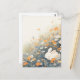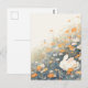 This tranquil postcard features a peaceful white rabbit fast asleep, nestled comfortably in the corner of a lush wildflower hillside. The artwork is rendered in a dreamlike, soft watercolor style with a warm palette of apricot orange, cream, and soft moss green. Delicate white and orange blossoms sway in the tall grass, creating a sense of quiet sanctuary and gentle movement. With its airy composition and serene vibe, this piece perfectly captures a moment of pure natural rest. This postcard is a beautiful choice for sending a peaceful greeting, a "thinking of you" note, or a gentle birthday message to any nature lover.