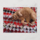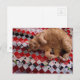Postal Sleepy Ginger Kitty on a red quilt