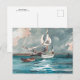 Una postal con la pintura de arte fino de Winslow Homer (1836-1910) Sloop, Bermudas (1899). Un paisaje marino de un eslúpulo en las aguas azul acuático frente a las Bermudas. Homer viajó a Bermudas, Cuba y Florida. Muchas de sus pinturas son de esta zona.