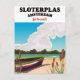 Cartel de viaje del Sloterplas Amsterdam con un antiguo bote remo en la playa.