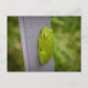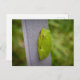 Found in a Virginia marsh, a tiny green tree frog silently clings to a metal rail.