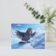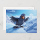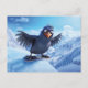 A stylized cartoon raven snowboards down a snowy mountain slope, wearing ski goggles and a confident grin. The bright blue sky, crisp snow, and dynamic pose create an energetic winter scene with playful toon-shaded charm.