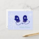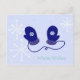 Un diseño bonito para el clima invernal. Un suave fondo azul con copos de nieve blancos flotando alrededor. Las palabras que el invierno desea en azul suave. Un par de mitones azul real con un diseño de copo de nieve en el centro.