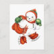 Pequeño y lindo muñeco de nieve usando patines de hielo, mitones, gorra y bufanda. Diseño de tarjetas retro en Navidades brillantes Colores
