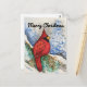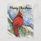 Envíe una postal encantadora con un cardenal rojo encaramado en un árbol de bosques nevados y conos de pino. La imagen de Feliz Navidad es un encantador diseño estacional creado a partir de mi pintura acuarela original. La belleza del invierno da un tema de vacaciones a la pintura realista de aves silvestres. Una forma perfecta para que una familia o una persona añada su propio mensaje al fondo.