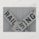 All rights reserved © Angelandspot A rail crossing sign sits in the snow in front of a white barn