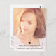 Esta simple postal de invitación de graduación fotográfica incluye una foto completa del nuevo graduado. La parte inferior de la postal incluye el nombre del graduado y el año de graduación en un marco y con un tope de graduación. En la parte posterior de la tarjeta postal, puede agregar un mensaje personal y detalles de la fiesta de graduación.