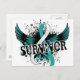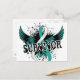 Para ver este diseño para causas adicionales, así como la completa colección Boutique Awareness Gift de diseños exclusivos de ayuda y sensibilización sobre el cáncer de cuello uterino, por favor visite nuestra Sección de Cáncer de Cervical en Usted es un sobreviviente de cáncer de cuello uterino. Usa orgullosamente tu Victoria con nuestras llamativas camisetas, mercadería y vestimenta de Superviviente del Cáncer, con una impresionante cinta de sensibilización sobre el cáncer de cuello uterino verde azulado y blanco centrada en un par de alas angustiadas, un fondo salpicado de graffiti y texto en tono de borrón. Idea de regalo para el sobreviviente del cáncer de cuello uterino en su vida o para un aniversario de sobrevivientes. Como sobrevivientes de cáncer y enfermedades y guerreros, cónyuges y ávidos defensores de la conciencia, estamos encantados de apoyar a varias organizaciones de caridad y los invitamos a pensar en nosotros primero por todas sus necesidades de concientización y apoyo sobre el cáncer de cuello uterino.
