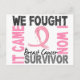 Vea todos nuestros diseños exclusivos de concientización sobre el cáncer de mama TODOS MOSTRADOS EN UNA PÁGINA visitando la Sección de Cáncer de Mama de nuestra Tienda Zazzle, llegó el cáncer de mama. Los dos lucharon. Ganaste. Comparte el dulce sabor de la victoria con todos los que te rodean mientras da esperanza a los que todavía pelean con nuestras camisetas, ropa, regalos y mercadería "It Came We Fought I Won" que incluyen texto grosero, una audaz disposición que capta la atención y una cinta rosa para la toma de conciencia sobre el cáncer de mama. Este poderoso diseño de sobrevivientes del cáncer de mama es un regalo ideal para el nuevo sobreviviente del cáncer de mama o el aniversario de un sobreviviente. Como sobrevivientes del cáncer, cónyuges y ávidos defensores de la conciencia, estamos orgullosos de contribuir a numerosas organizaciones de investigación médica, así como a los esfuerzos de rescate de animales y de Salvar a Darfur y pedir que nos piensen primero por todas sus necesidades de concienciación y apoyo en relación con el cáncer de mama.