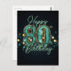 Postal Sofisticado Cumpleaños 80 en Verde Acuático y Metá