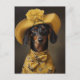 Postal Sofisticado Dachshund en amarillo