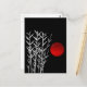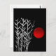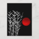 Árboles de bambú y sol rojo en círculo zen negro dibujado a mano con tinta en pintura tradicional japonesa