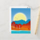 Sol sobre montaña azul con ciervo a orillas del lago Postcard