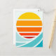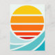 Sol moderno en tonos amarillos, naranjas y rojos derritiéndose en olas oceánicas azules verde azuladas. ¡Para los amantes de la playa!
