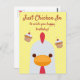 Si estás buscando una tarjeta de cumpleaños divertida y feliz, super simple, linda y graciosa para un amigo, familiar o ser querido amante de las gallinas, podrías apreciar esta Tarjeta Postal de Cumpleaños Personalizada Just Chicken In Simple Funny Yellow de Zazzle. Cada tarjeta está disponible en tipos de papel mate o semi-brillante, y se vende con o sin sobres, por unidad o en cantidades de 2-2000. Ligeramente rayada y con un corazón estampado en la parte posterior para un toque de amor y la comodidad de escribir tu dirección. Ideal para mamás de gallinas, papás de gallinas, niños o adultos que disfrutan de las gallinas y el humor extravagante o tarjetas de cumpleaños.