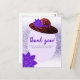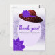 Tarjeta de agradecimiento Sombrero de purpurina rojo lavanda púrpura. Sombrero rojo brillante con flores púrpuras y brillo de lavanda violeta en la parte posterior. Personalice el texto para su evento. Tenga en cuenta que usamos foto de purpurina, ¡no purpurina real! ¡No hay purpurina desordenada al tacto!
