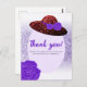 Tarjeta de agradecimiento Sombrero de purpurina rojo lavanda púrpura. Sombrero rojo brillante con rosas púrpuras y brillo de lavanda violeta en la parte posterior. Personalice el texto para su evento. Tenga en cuenta que usamos foto de purpurina, ¡no purpurina real! ¡No hay purpurina desordenada al tacto!