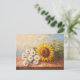 Postal Sombrillas y margaritas en mesa rústica
