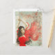 Esta postal cuenta con una bailarina de flamenco que sueña su ciudad natal en España mientras baila.
