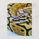 Una foto muy cercana de la cabeza de un pitón de bola amarillo.