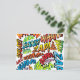 Postal Sonidos divertidos de arte pop de cómic retro
