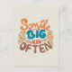 Envía una ráfaga de felicidad con nuestra deliciosa postal con el mensaje edificante "Sonríe grande, ríe a menudo". Este encantador diseño le dará alegría a todos los días. Comparte vibraciones positivas y alegra el mundo de alguien con este cálido saludo. ¡Perfecto para esparcir sonrisas y risas a lo largo de los kilómetros!