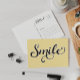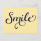 Envíe un mensaje para decirle hola con una de nuestras postales personalizados. Adorada con un suave fondo amarillo con letras guiñadas a mano, la palabra Sonrisa en el frente. Personalizar la parte posterior con tu dirección. Ver nuestra selección completa de tarjetas de felicitación en nuestra tienda Zazzle!
