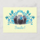 Postal ¡Sonríe! Cámara Con Hojas Azules Y Mariposas