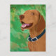 Perro Vizsla sonriente, pintado digitalmente en un fondo verde urbano. ¡Creado artísticamente para los amantes de los perros de verdad!