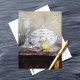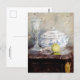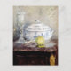Una tarjeta postal de bellas artes con la pintura titulada, Sopera y Manzana (1877) de la impresionista francesa Berthe Morisot (1841-1895). Una impresionante tarjeta postal de naturaleza muerta que representa una vibrante manzana verde junto a una clásica sopera azul y blanca y una copa de cristal brillante.